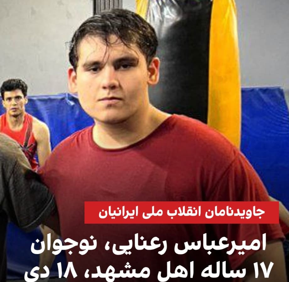 امیرعباس رعنایی، نوجوان ۱۷ ساله اهل مشهد، ۱۸ دی ۱۴۰۴ در میدان هفتتیر این شهر کشته شد. او بوکسوری با استعداد بود و در یک باشگاه ورزشی، در کنار علی حبیبینژاد، بوکسور تیم ملی، تمرین میکرد. به گفته نزدیکانش، پس از چند روز بیخبری و پاسخ ندادن تلفن همراه و غیبت در باشگاه، نگرانی خانواده و دوستانش افزایش یافت تا اینکه مشخص شد او کشته شده است و تا زمان انتشار این خبر، پیکرش هنوز به خانواده تحویل داده نشده است.