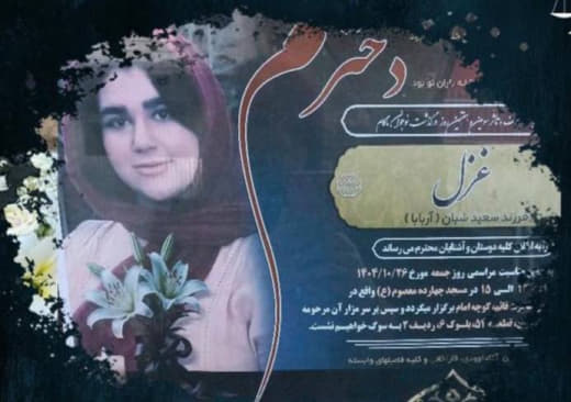 غزل جانقربان، ۱۵ ساله، هنرجوی رشته کامپیوتر و تکفرزند خانواده، شامگاه ۱۹ دی نزدیک زایندهرود اصفهان با پدر و مادرش در اعتراضات شرکت کرد و با اصابت سه گلوله ماموران جان باخت.