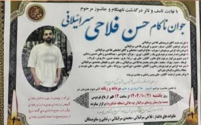حسن فلاحی، جوان کُرد یارسان در جریان اعتراضات مردمی محله الهیه کرمانشاه در شب ۱۹ دی ۱۴۰۴ با اصابت گلوله جنگی از پشت سر توسط نیروهای نظامی-امنیتی کشته شد. نیروهای امنیتی اجازه دفن پیکر او را در شهر کرمانشاه ندادند و خانواده ناچار شدند او را در روستای خانوادگی خود، «سرائیلان توه خاکی» شهرستان کرمانشاه، به خاک بسپارند. مراسم خاکسپاری در تاریخ ۲۱ دی برگزار شد و با وجود فضای امنیتی، شرکتکنندگان شعارهای ضدحکومتی سر دادند.