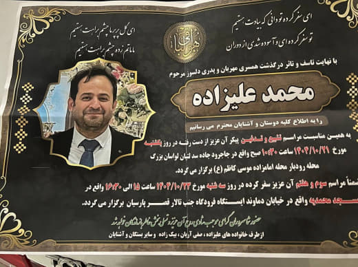 محمد علیزاده ۴۰ ساله و پدر دو فرزند بود که با شلیک مستقیم ماموران امنیتی جمهوری اسلامی در تاریخ پنجشنبه ۱۸ دیماه در منطقه هفتحوض تهران کشته شد.