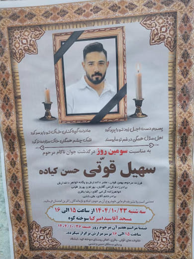 سهیل قوتی، شهروند گیلک اهل کیاشهر، روز ۱۹ دیماه ۱۴۰۴ در خیابان جهاد آستانهاشرفیه هدف تیراندازی قرار گرفت و کشته شد. بر اساس اطلاعات دریافتی، سهیل قوتی در شغل مشاور املاک فعالیت داشته و بنا بر گزارش ها، او بدنساز بوده است. یک شاهد عینی گفته است که او همزمان هدف گلوله ساچمهای و تیر جنگی قرار گرفته است.